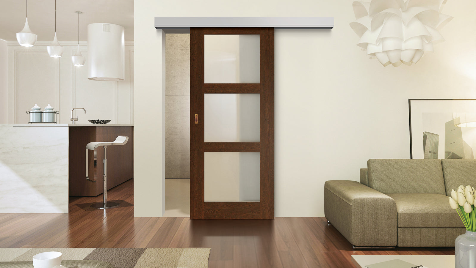Harmony piilokarmiovien yhteydessä sopii erityisesti Syntesis line -karmiton seinän sisään liukuva järjestelmä.